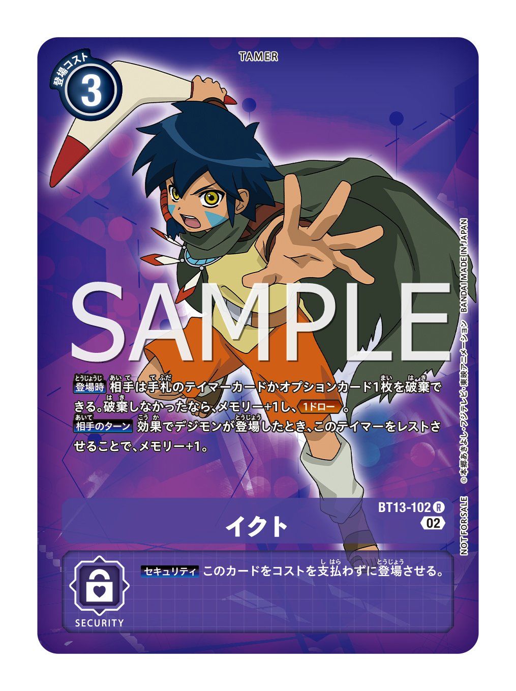 【對方回合】數碼寶貝因效果登場時,使此馴獸師休息,記憶體+1。